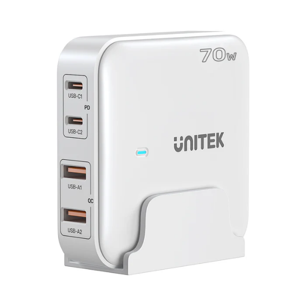 תחנת טעינה UNITEK – USB + USB-C 70W (לבן)
