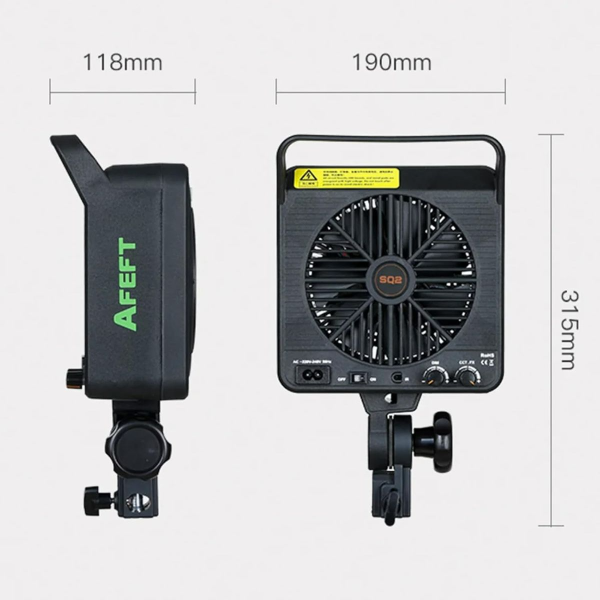 ה-SQ2 כולל תושבת Bowens סטנדרטית שמאפשרת חיבור מגוון רחב של מעצבי אור כמו רפלקטורים, סופטבוקסים וכלים נוספים לעיצוב אור מקצועי. בנוסף זווית קרן של כ-38° מספקת פיזור אור מחושב שמאפשר עבודת תאורה מבוקרת גם בסביבות מורכבות.