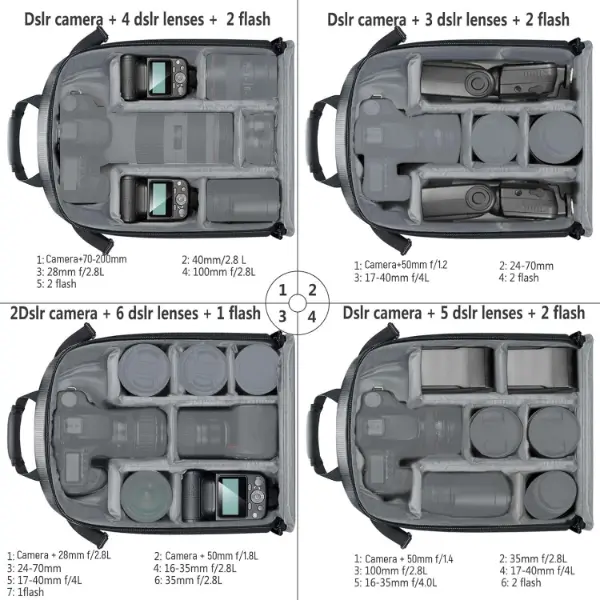 הערה: תיק גב בלבד, מצלמה, עדשה ואביזרים אחרים אינם כלולים