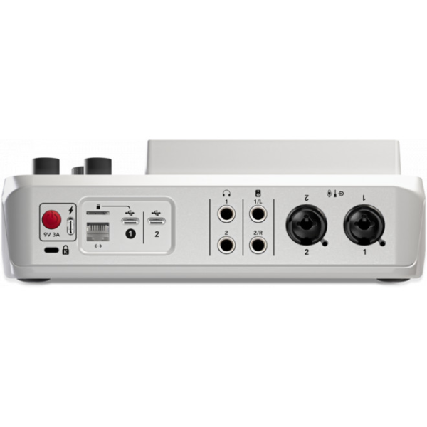 שני שקעי Neutrik משולבים איכותיים לחיבור מיקרופונים וכלי נגינה, עם קדם-מגברי Revolution בעלי רעש נמוך במיוחד (-131.5dBV EIN, רווח של 76dB) לשמע בתולי