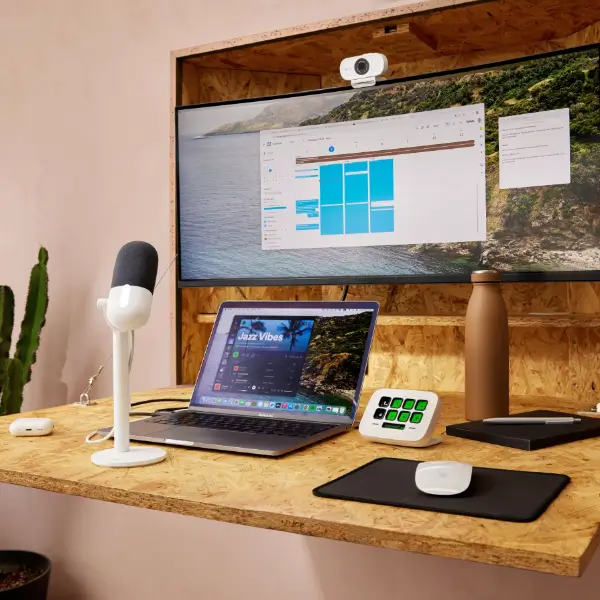 תאורה חזקה, מיקרופון באיכות אולפן, מצלמת וובקאם חדה במיוחד ובקר Stream Deck לשליטה מלאה בכל תהליך ההפקה.