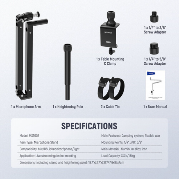 זרוע שולחנית למיקרופון עם בלימה Neewer Mic Arm LP