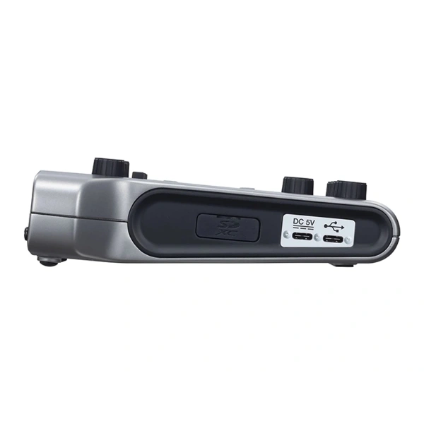 מעל הסקשן הזה נמצאים ארבעה כפתורי Mute במידה ורוצים להשתיק את אחד הערוצים ומעל כל אחד מהם נמצר בורר שקובע מאיפה מגיע הסיגנל של אותו ערוץ – ממיקרופון רגיל, מיקרופון קונדנסר (המצריך מתח חשמלי נוסף) או מחיבור USB.