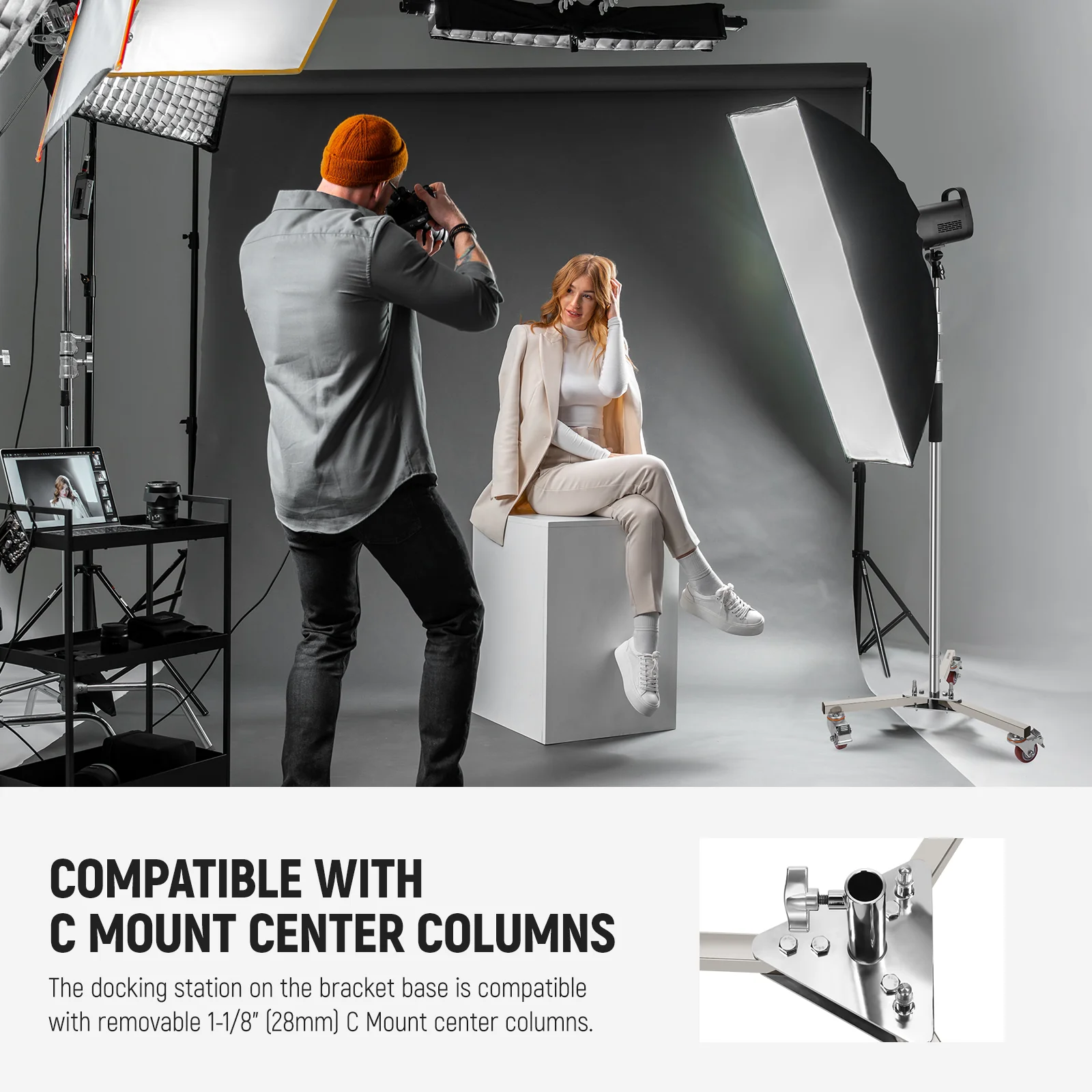 שלושת הגלגלים הננעלים מספקים ניידות קלה בסטודיו או על סט צילום, ומאפשרים להזיז ציוד תאורה גדול ללא צורך בהרמה.