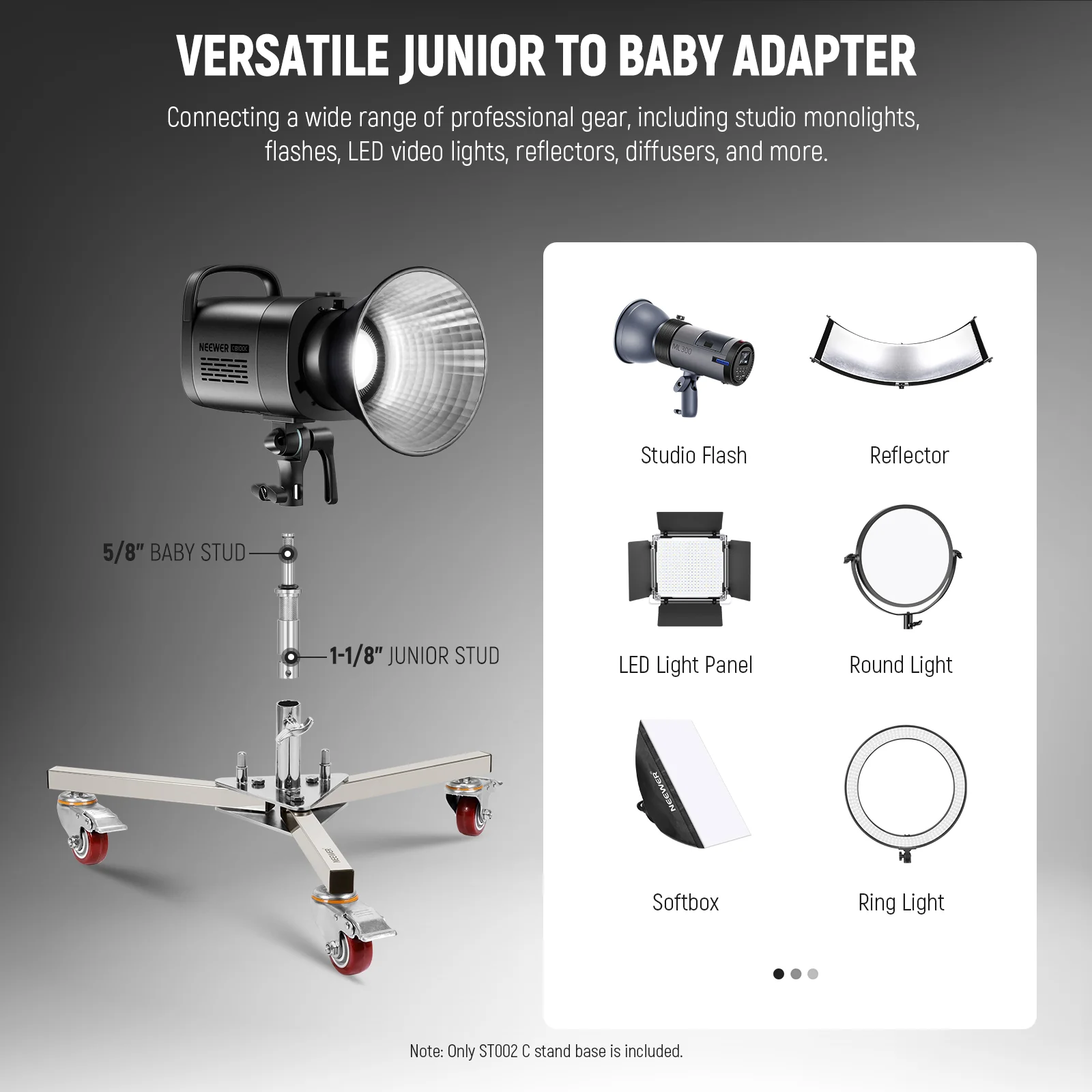 ה־Neewer ST002 Steel Light Stand Base הוא בסיס תאורה כבד ואמין שנועד לספק יציבות, ניידות ושליטה מושלמת בציוד התאורה שלך.