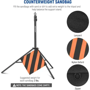 מעמד הרקע מסגסוגת אלומיניום עמיד ויציב עם קיבולת עומס של עד 8.8 פאונד/4 ק"ג. שני שקי חול ניילון כתומים כלולים ליציבות נוספת