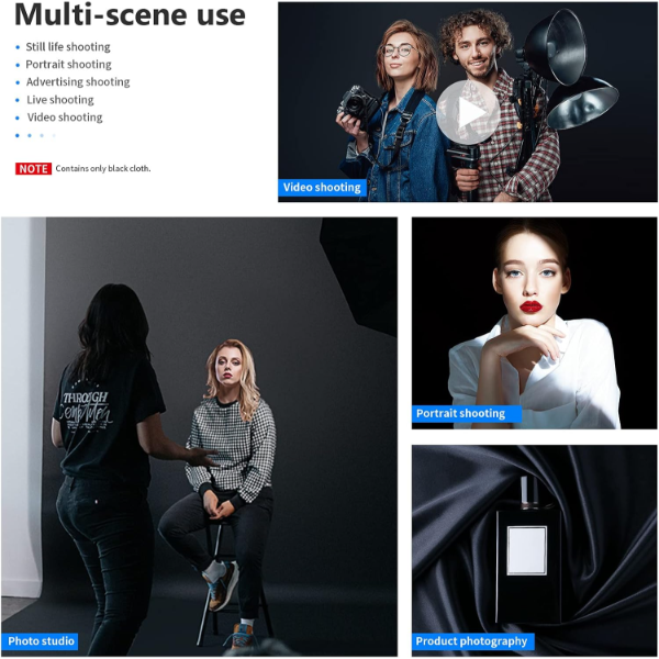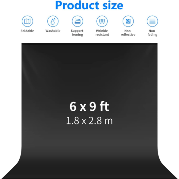 ה־Neewer Background Black 1.8×2.8 מטר הוא רקע צילום מתקפל מבד איכותי, אידיאלי לשימוש בסטודיו, בצילומי וידאו, ובצילומי מוצרים ופורטרטים.